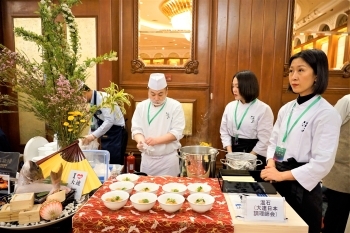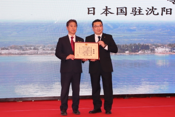 招待会上还向活跃在大连的“大连日本调理师会”转授了日本国驻沈阳总领事馆濵田隆总领事授予的在外公馆长表彰。