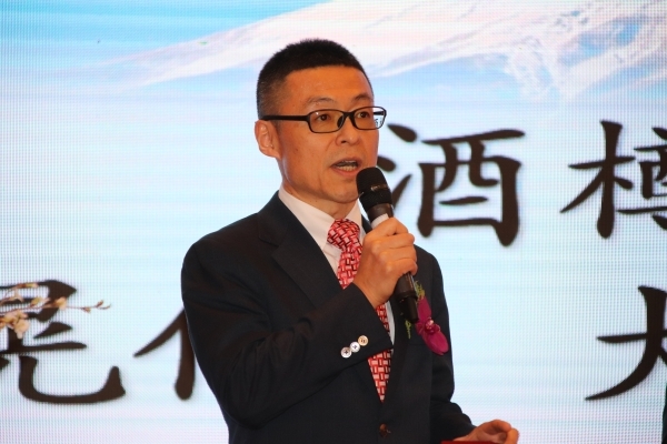 嘉宾代表还进行了酒樽开镜仪式,大连日本商工会柴田晃伸会长(日本航空大连支店长)致祝酒辞。