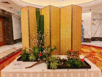 大连容月池坊花道工作室花道作品“春晓” 日本小原流大连槐花支部花道作品“春之花见“