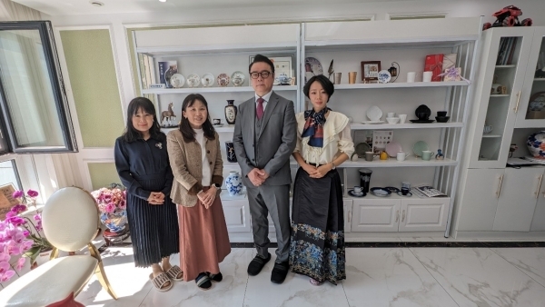 右起香兰社(大连)商贸有限公司销售总监·杨艳、同公司总经理·青山哲也、濵田伸子领事