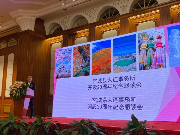 宫城县大连事务所于2005年在大连设立,今年正好迎来了开所20周年。8月28日晚,宫城县举办了“宫城县大连事务所开设20周年纪念恳谈会”,辽宁吉林等地约60位嘉宾参与其中。小林副知事在致辞中回顾了宫城县大连事务所以仙台-大连之间定期航班在2003年开通为契机而成立的渊源,以及20年以来开展的多项活动,并表示将继续在经济、文化、青少年交流等广泛领域为两国发展做出贡献,表达了今后将进一步扩大交流的决心。