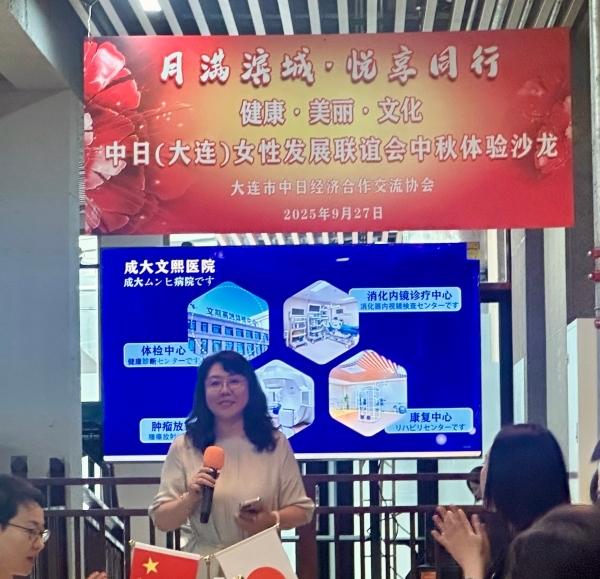 9月27日,领事办公室濵田伸子首席代表出席了大连市中日经济合作交流协会中日(大连)女性发展联谊会在大连文熙医院举办的中秋体验沙龙,并与日中双方参会者进行了广泛交流。