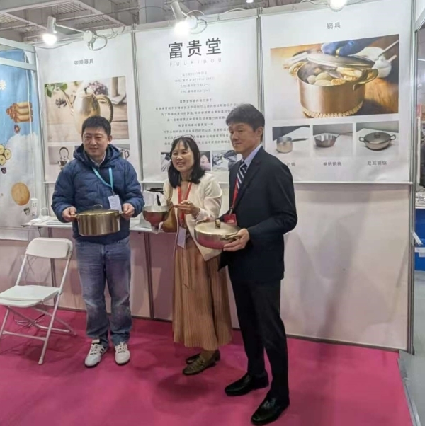 大連庫瑞斯特科技有限公司と日本企業(9社:(1)天然素材蔵(神奈川県)、(2)大興産業(岡山県)、(3)メイク(広島県)、(4)寿マナック(広島県)、(5)サイレンサー(広島県)、(6)服部製紙(愛媛県)、(7)アンテナ(福岡県)、(8)浜本胡麻豆腐店(長崎店)、(9)大仁産業(熊本県)の共同ブース