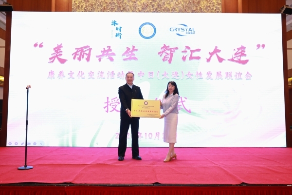 「中日(大連)女性発展聯誼会」プレート授与の様子