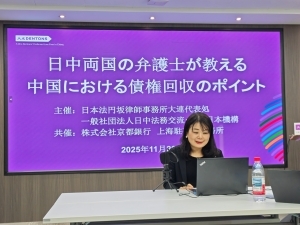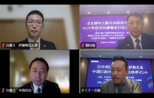 本次研讨会采用线下结合线上的形式,日中双方四位律师结合具体案例分享债权回收方法、审判及仲裁流程、债权人的财产调查方法、中国的强制执行、回收的局限和对策等内容。