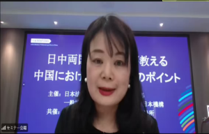 11月26日,领事办公室米田麻衣副代表出席大连市内举办的对华商务相关法律研讨会并致辞。