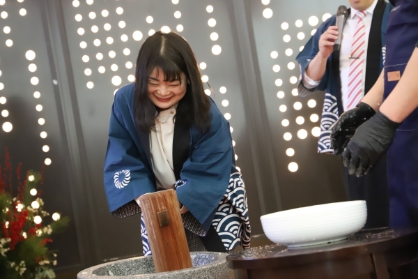 随后,大连日航饭店竹田明家总经理宣布打年糕活动开始,大家通过打年糕共同庆祝新年,参与者品尝了现场制作的年糕并在喜庆的氛围中互致新年祝福。