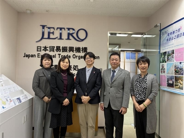 まず、髙田総領事は浜田伸子・在大連領事事務所所長とともに、佐藤秀二・日本貿易振興機構(ジェトロ)大連事務所長を訪問し、同事務所内に設置された日本産食品常設展示ルームを視察するとともに、意見交換を行いました。