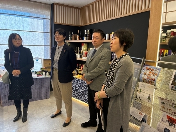 13日,高田真里总领事和大连领事办公室濵田伸子首席代表访问了日本贸易振兴机构大连代表处,与佐藤秀二所长见面交流,并参观了设于该代表处内的日本产食品常设展厅。