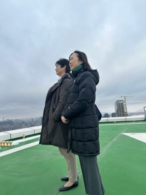 高田总领事和濵田首席代表在大连交易广场停机坪俯瞰大连
