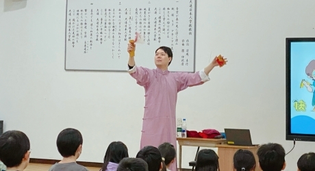 低学年では、相声で使われる楽器「快板(クアイバン)」の体験を中心に、リズムに合わせて音を出し、中国文化の楽しさを肌で感じる躍動感あふれる授業となりました。