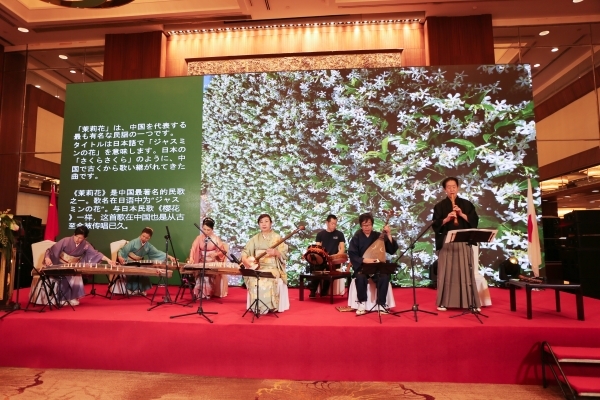 招待会上,日本邦乐演奏团体“神户邦乐工作坊”还为来宾献上了为纪念2028年日中和平友好条约缔结50周年而创作的合奏曲“日中音乐之桥”。