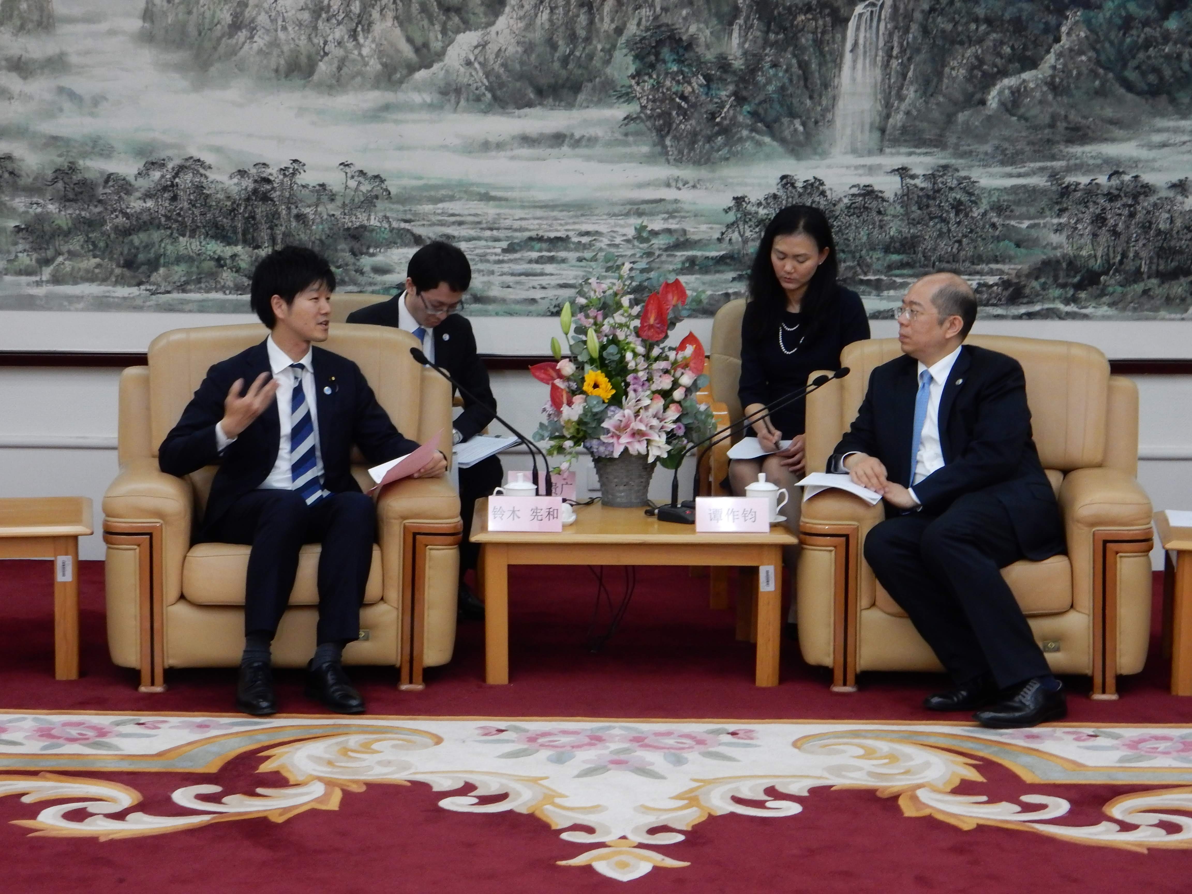 26日,铃木政务官与大连市长谭成旭进行了会谈,双方就进一步加强日本和大连市的经济、观光、地方之间以及青少年交流等问题交换了意见。