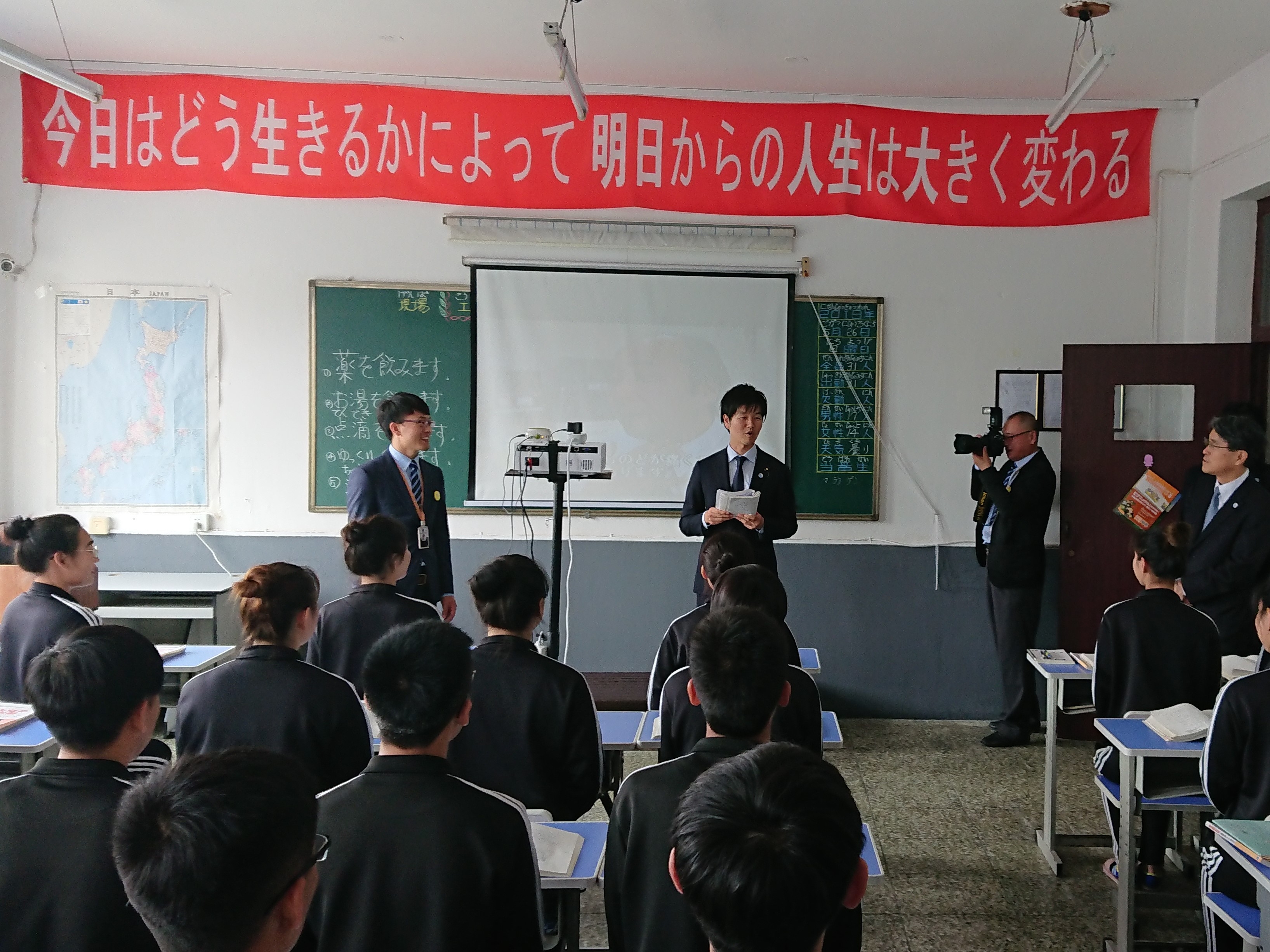 此外,政务官还与大连市内大学的日语专业的教授以及学生们进行了交流,并就大连日语教育的普及以及日中青少年交流的情况交换了意见。